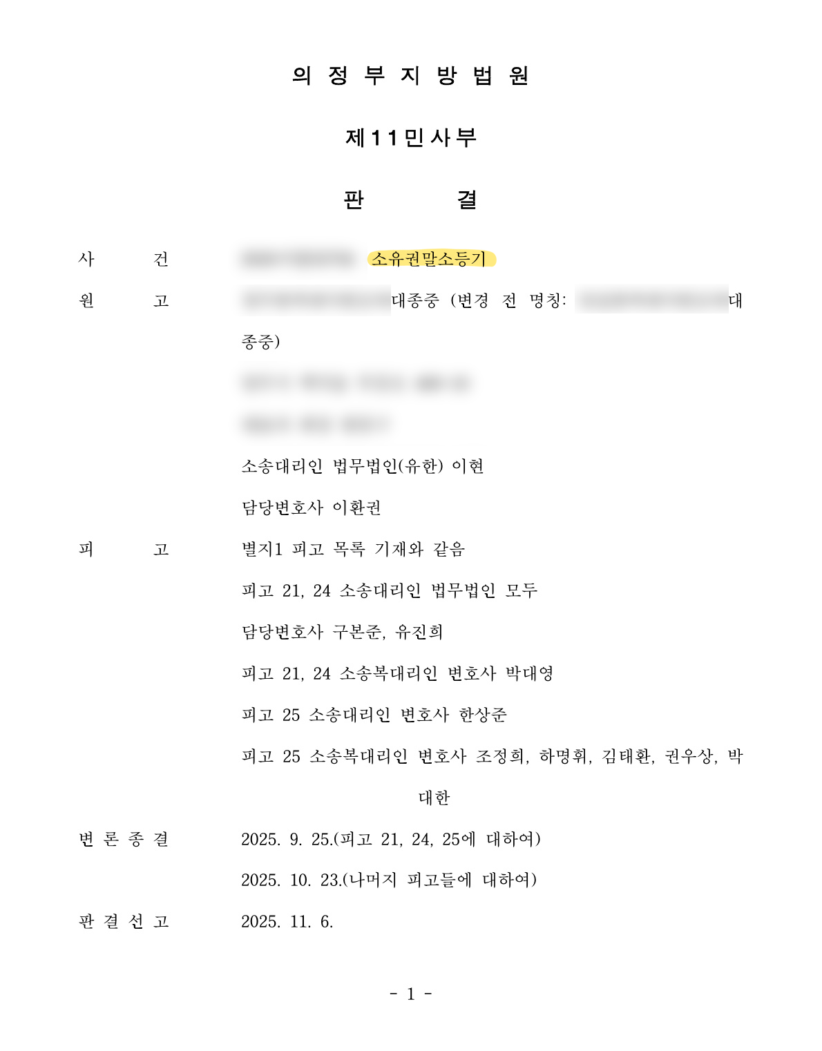 의정부지방법원은 법무법인 이현의 주장을 전면 받아들여 원고 승소 판결을 선고하였습니다.