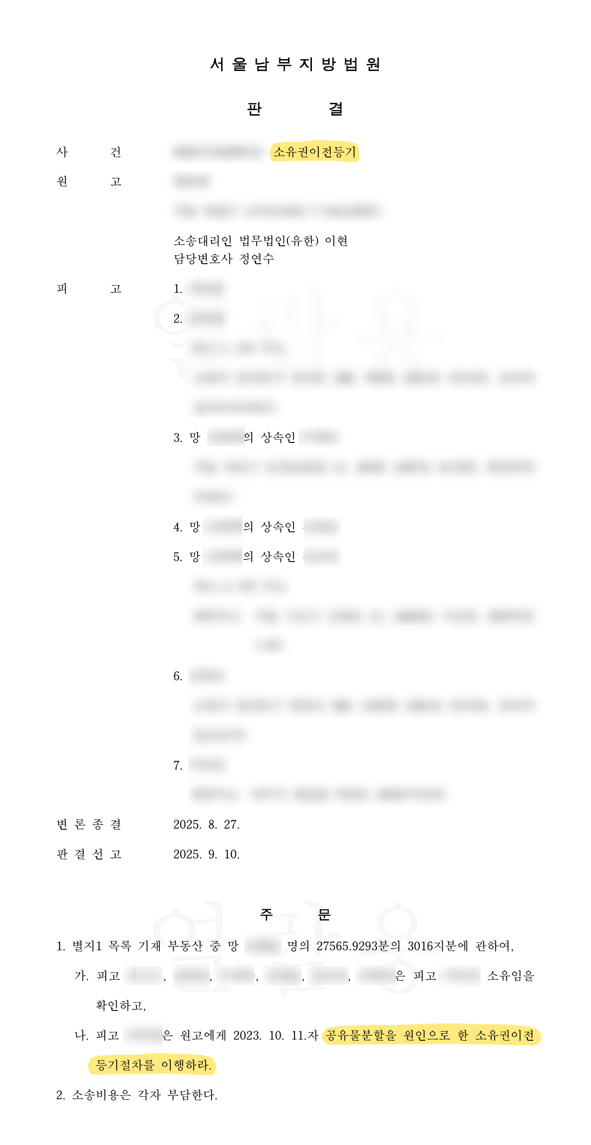 이에 법무법인 이현은 선행 사건인 공유물분할 소송을 대리하여,