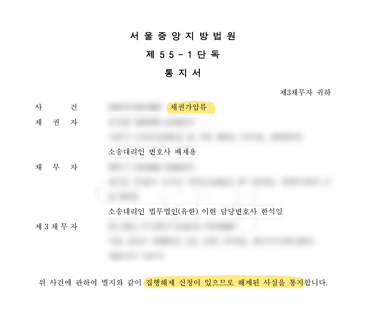 법무법인 이현의 체계적이고 전문적인 대응에 압박을 느낀 상대방(채권자)들은
