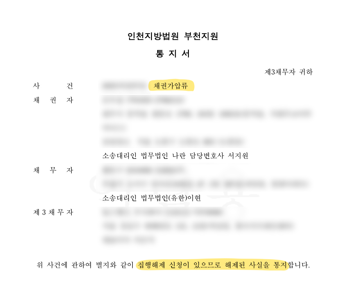 상대방 B: 인천지방법원 부천지원에 약 1,300만 원을 청구금액으로 하는 채권가압류 결정을 받음