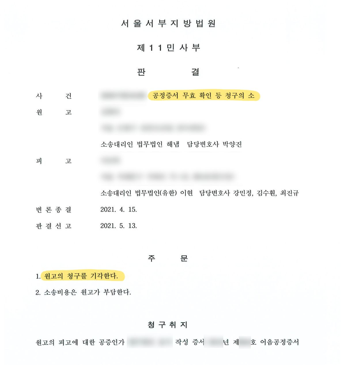 법무법인 이현은 의뢰인이 보유한 공정증서가 유효함을 입증하는 동시에,