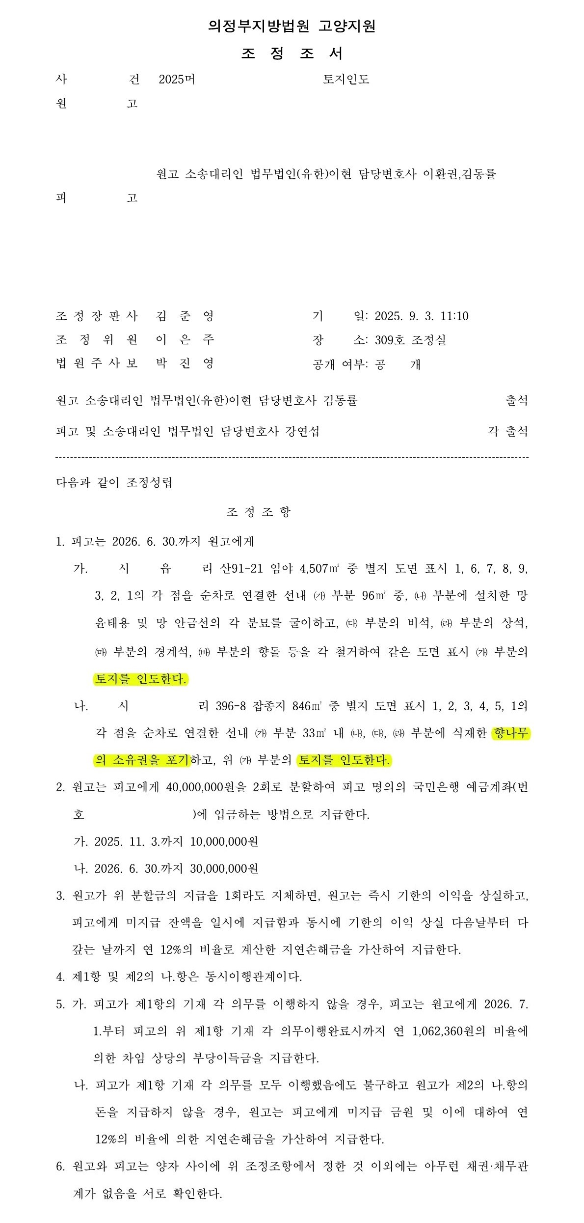 대신 조정 절차를 통해 의뢰인의 실질적 토지 회복과 합리적 보상이라는 두 가지 목표를 동시에 달성하는 전략적 접근을 선택하였습니다.