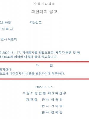 법인파산ㅣ이현의 조력으로 파산종결결정
